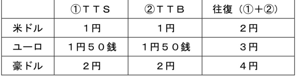 こちらは金融機関で取扱していた手数料ですが、アメリカドルを売買すると、