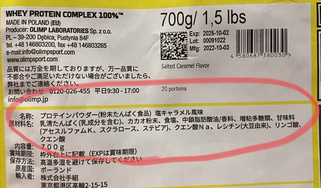 オリンプのプロテインには、26gのタンパク質が含まれています。
