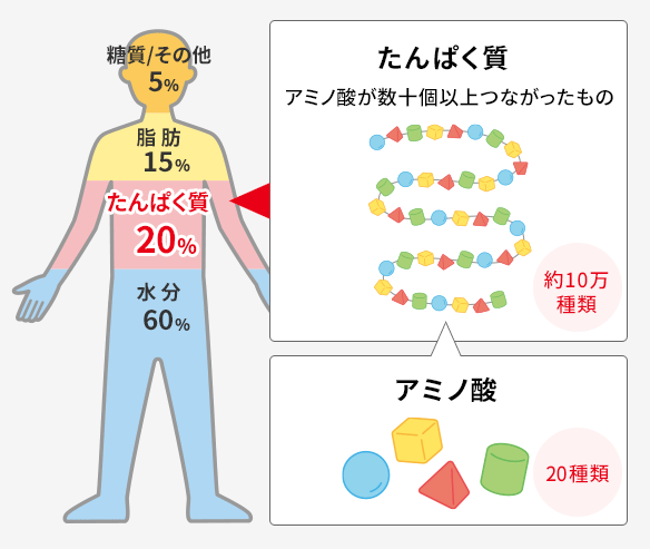 人間の20%がタンパク質で出来ているといわれています。